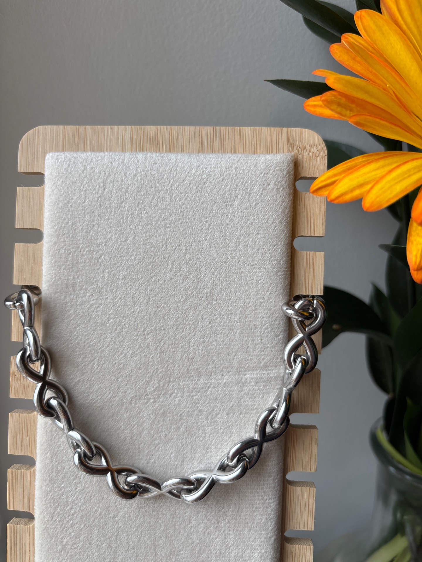 Rannekoru, hopea, ruostumatonta terästä. Pituus 22cm, mahdollisuus ketjun lyhentämiseen, tulee mainita tilausvaiheessa kohdassa lisätiedot.