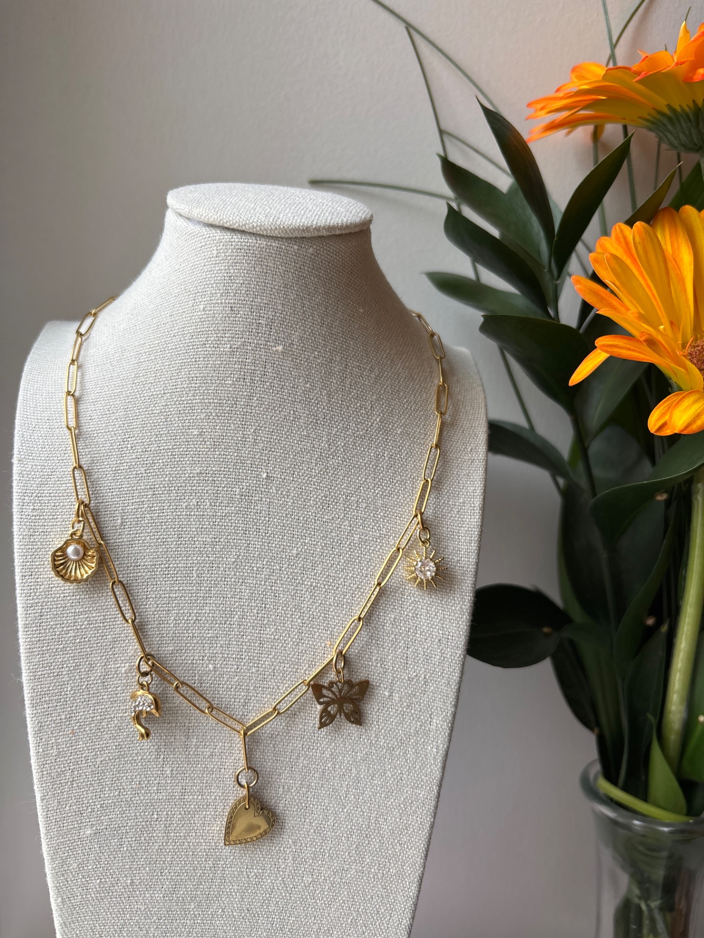Kaunis hempeä kaulakoru. Ruostumatonta terästä. Pituus 44cm.